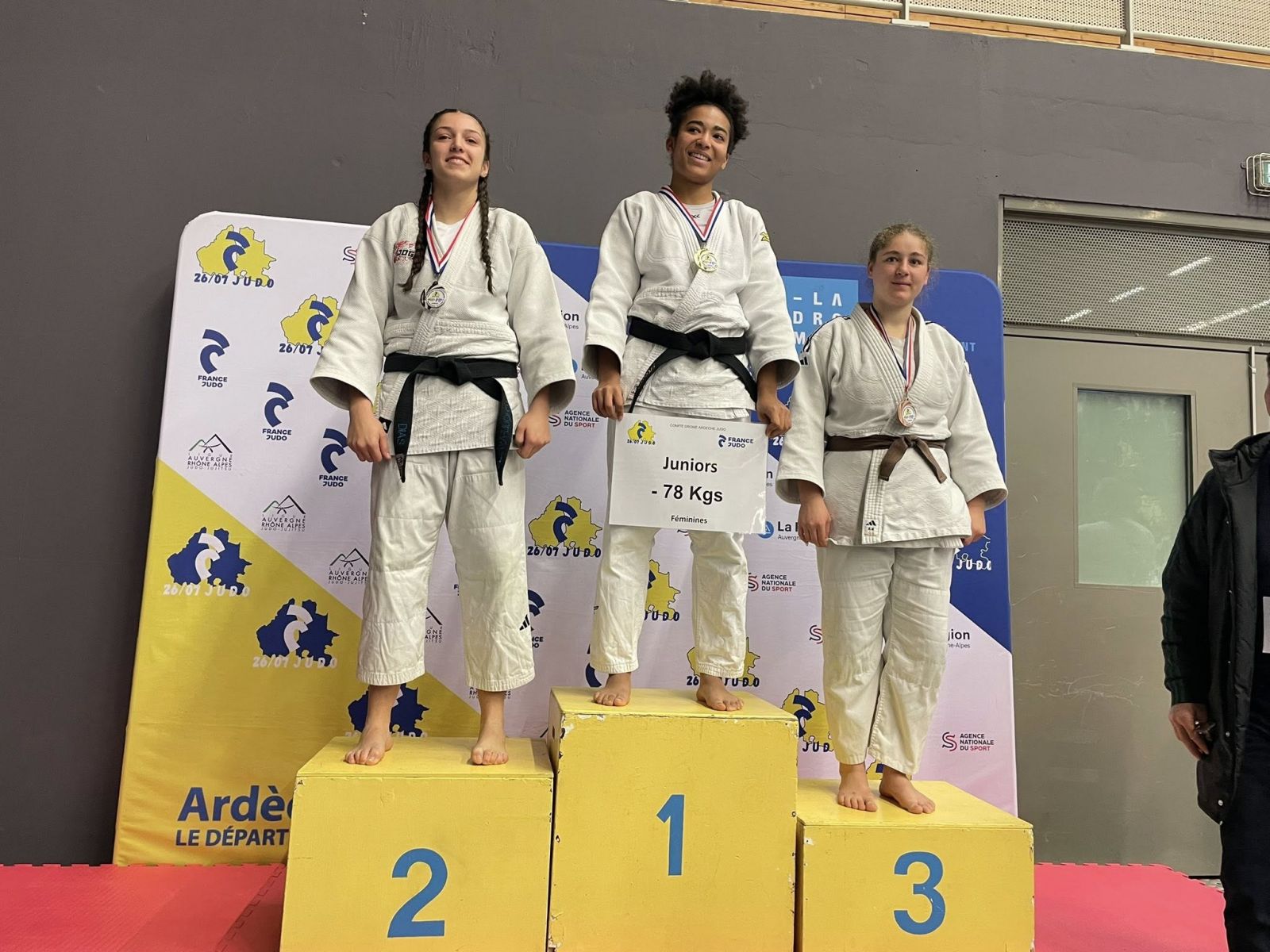 - En -73kgs,3ème Alseny monte sur la 3eme marche du podium, tandis que Noa après une victoire au 1er combat perd et ne sera pas repêché.