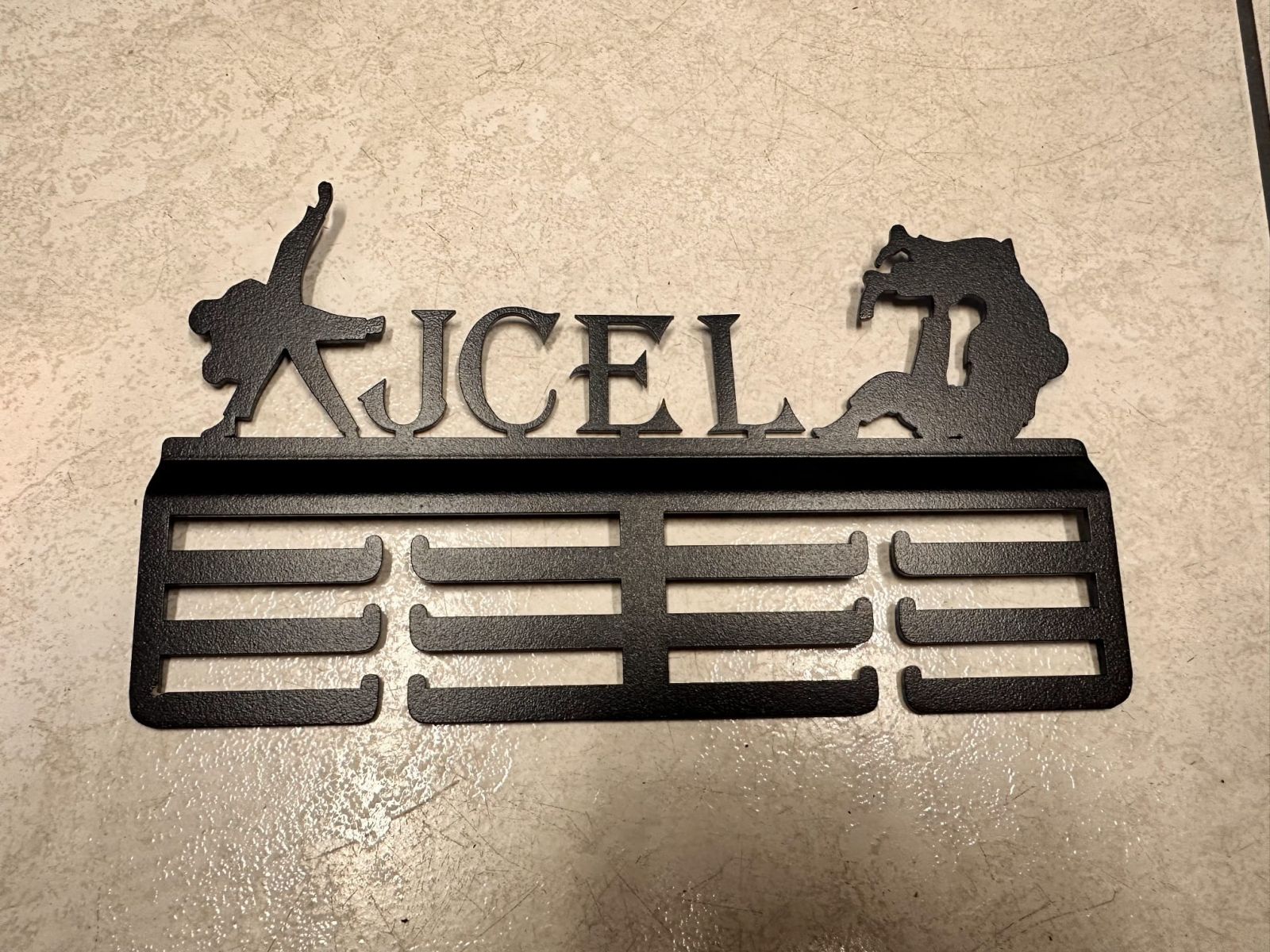 A L'occasion du Challenge Rabilloud qui aura lieu à Villette d’Anthon le samedi 25 avril, le Judo Club Est Lyonnais (JCEL) lance la pré-vente de son PORTE-MEDAILLES OFFCIEL aux couleurs du club, avec les initiales JCEL et 2 prises de judo en illustration !